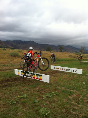 If you've been around awhile and watched Greg Lemond win his Tours de France you might've notice a guy before the scene named Bernald Hinault (aka The Badger). His pedaling strategy was to always ratchet it up a notch (increase wattage) the closer you got to the finish line. It didn't matter what the terrain was but you could not let up, or diminish intensity so within meters, or miles, or whatever measuring units of length you use you had better be bleeding out your ears near the finish line. That would be my strategy because I survived lap 1 and my tank wasn't empty. On the climb, I ride a bit quicker to make up time. What do I see ahead? My fun loving criminals with their ramp set up and the Wild Turkey flowing and applauses and screams for the suckas that get tempted. I see the ramp! I increase my wattage and boom I'm airborne in my Airborne. Applause and cheers for this sucka! Seconds later a guy gives me a professional handup. Instead of a musette bag it's a plastic cup with Wild Turkey (aka the Kickin' Chick'n!!) in it. Strangely enough, I like the heat when it touches my tongue and the heat following my esophagus's path as it passes onto my gullet (c'mon liver, process those toxins!). Soothing it is. At Aid Station number 1, I see Rob and fill up the tank. I'm walking the scree field to the apex of the course and time's a'tickin. Probably not going to get a sub-5h time with this. Kenny's riding like a fiend and passes me but Brian (after I learned his situation) is starting to cramp and has to ratchet down his intensity. So after hanging onto groups, getting dropped, passing groups, I settle into a group and I have to have the tenacity to hang because I lost so much time walking the scree field. I see dust flying so we're near the finish. My group passes a Sport girl and the singletrack gets tight so I get gapped from my group. I am cool and not a road snob so I say,
